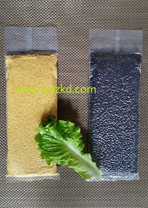 五谷真空袋是由多層高阻隔性塑料包裝材料復(fù)合而成,是將包裝容器內(nèi)的空氣全部抽出密封,維持袋內(nèi)處于高度減壓狀態(tài),空氣稀少相當(dāng)于低氧效果,使微生物沒(méi)有生存條件,以達(dá)到果品新鮮、無(wú)病腐發(fā)生的目的。其防蟲(chóng)、防霉、防潮效果更好,印刷也更清晰。
